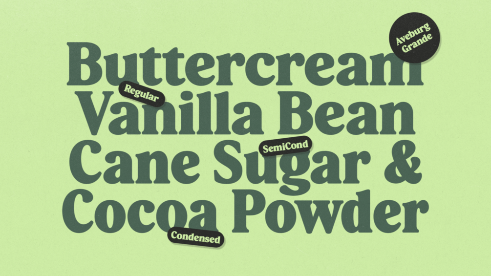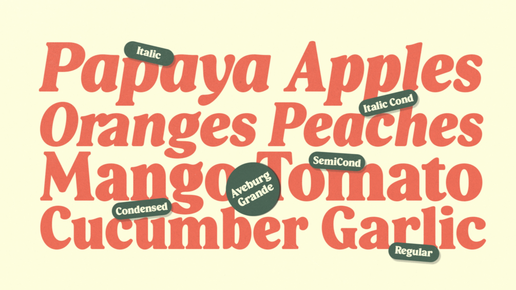 Aveburg Grande is a stylish and adaptable type family inspired by vintage editorial design, mid-century aesthetics, and timeless typography.